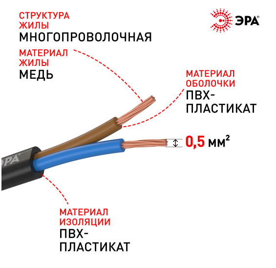 Провод ШВВП 2х0,5 ГОСТ 7399-97 черный ЭРА (100)
