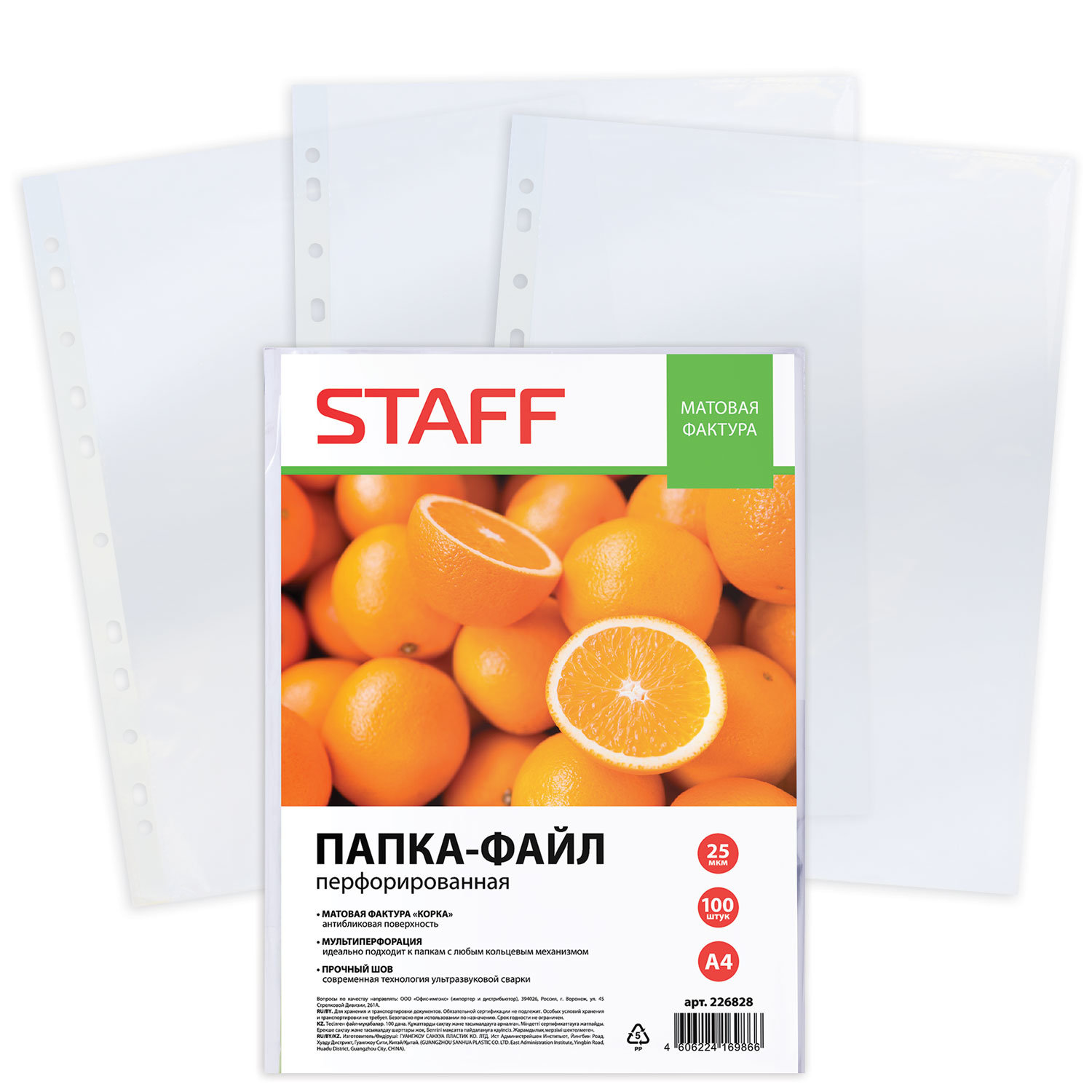 Файл А4 Staff 25мкм "Апельсиновая корка" комплект 100шт (10/30)
