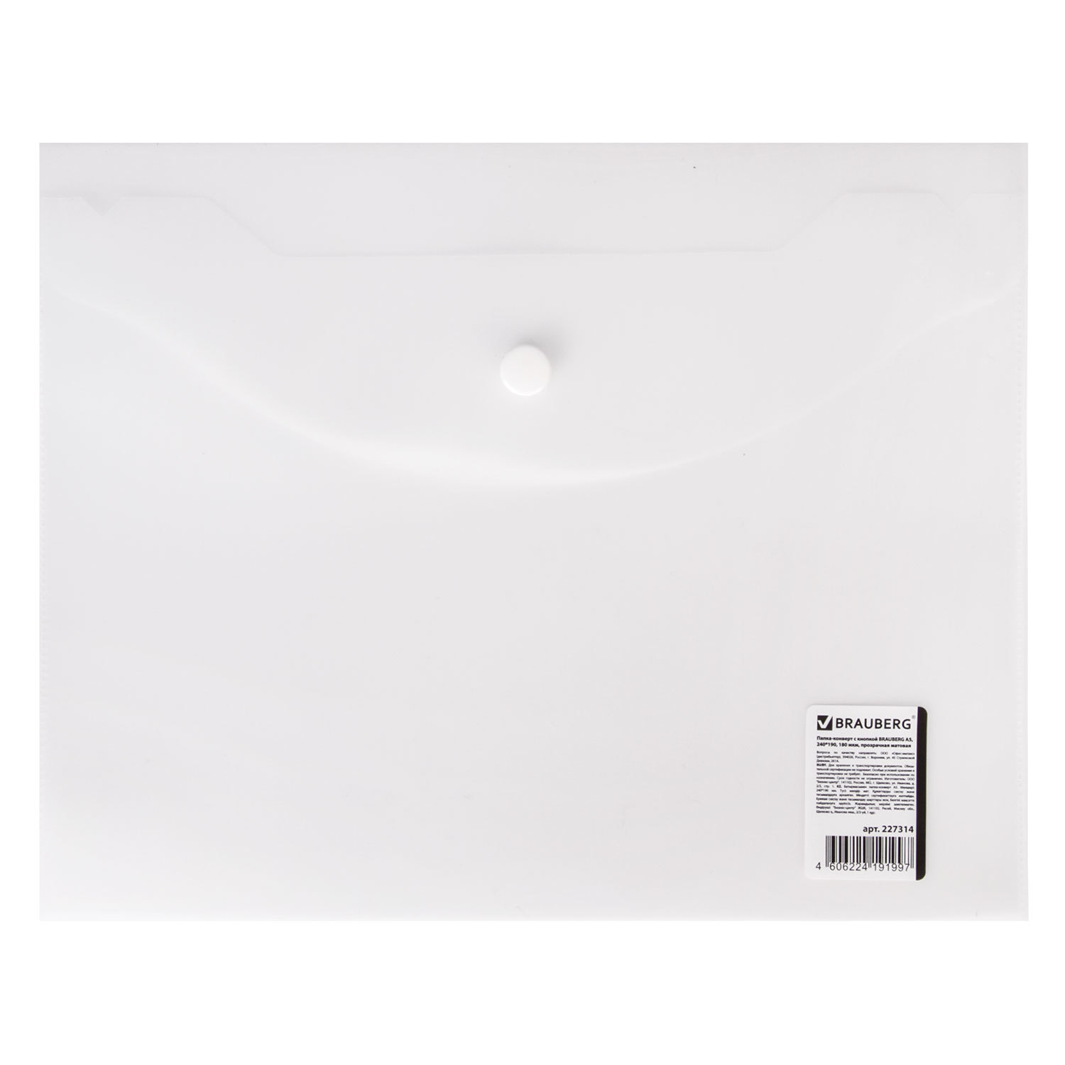 Папка-конверт на кнопке А5 BRAUBERG 180мкм 240*190мм пластик прозрачная (1/10)