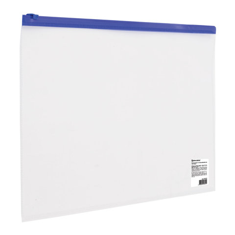 Папка-конверт на молнии А4 Brauberg прозр 0,11мм синяя (1/20)