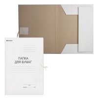 Папка для бумаг картонная с завязками Brauberg гарантированная плотность 280г/м2 до 200л белая (10/200)