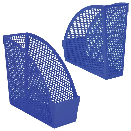 Предназначен для хранения бумажной продукции формата А4 на столе или в шкафу. Изготовлен из полипропилена синего цвета. Прочная сетчатая поверхность. Одно вместительное отделение шириной 100 мм. Устойчивая конструкция. Размер - 270х250 мм.