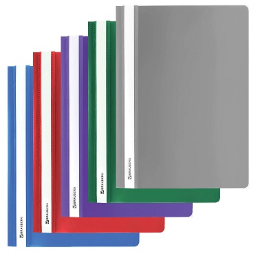 Классический пластиковый скоросшиватель. Простой механизм подшивки: металлические усики и пластиковая планка для надежной фиксации документов. В упаковке 25 скоросшивателей по пять штук каждого цвета - красного, синего, зеленого, серого, фиолетового.