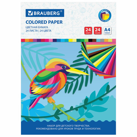 Цветная бумага А4 24л 24 цвета Brauberg Птица офсет 200*280мм на скобе (15/60)