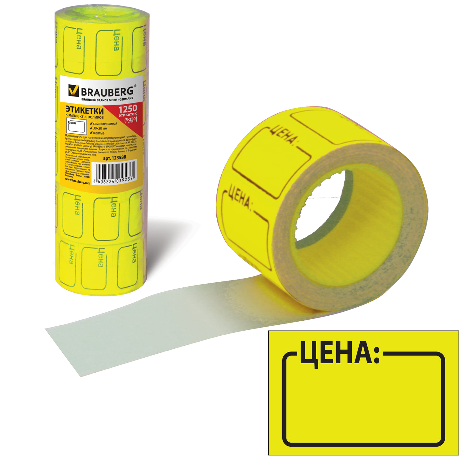 Ценники самоклеющиеся 20*30мм Brauberg "Цена" желтая комплект 5 рулонов по 250шт (1)