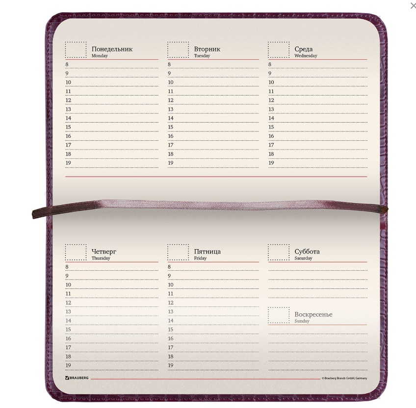 Еженедельник недатированный А6 Brauberg "Alligator" 95*155мм 72л. фактурная кожа кремовый блок коричневый (1)