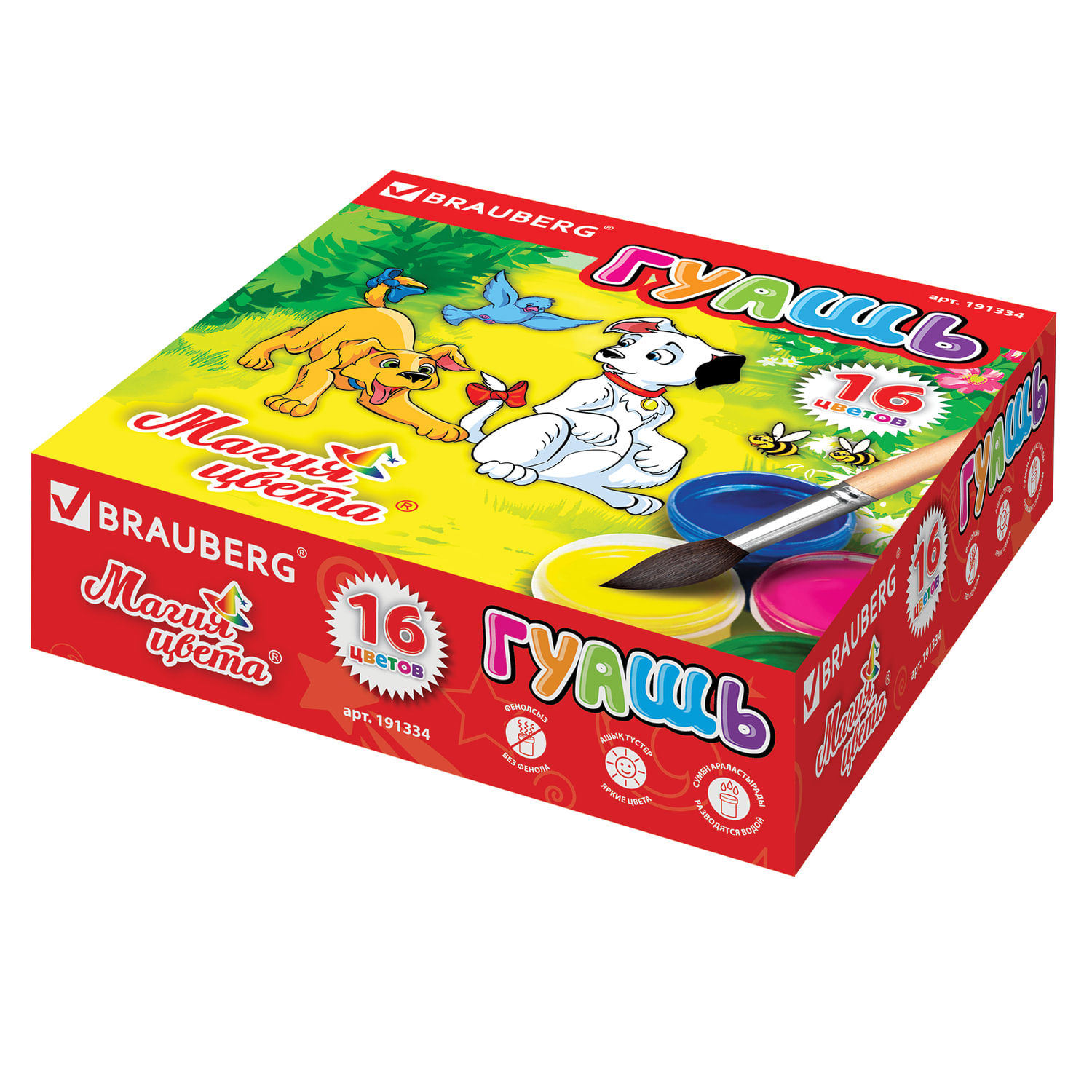 Гуашь 16 цветов BRAUBERG по 20 мл без кисти картонная упаковка (1/12)