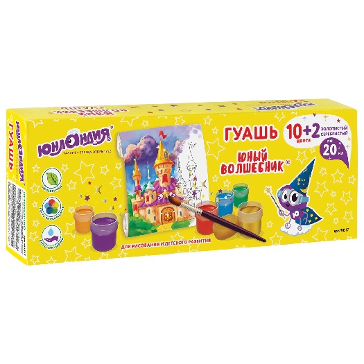 Гуашь Юнландия 10+2 цвета "ЮНЫЙ ВОЛШЕБНИК" по 20 мл (золотистый+серебристый) без кисти картонная упаковка (4/12)