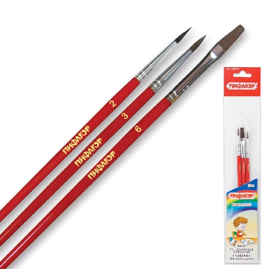 Кисти Пифагор набор 3 шт. (пушно-меховая круглая № 2, плоская № 6, из ворса пони круглая № 3) (1/12)