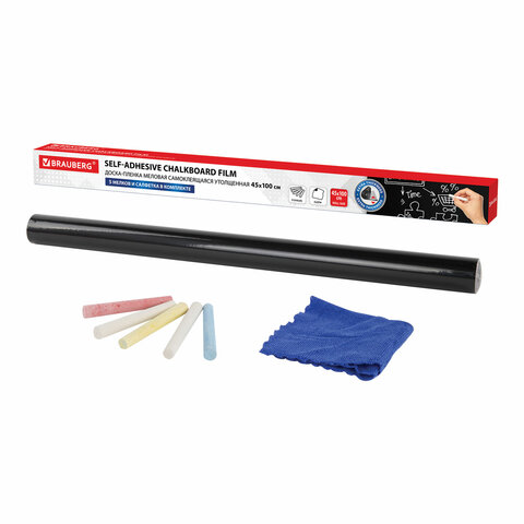 Доска-пленка меловая самоклеящаяся в рулоне чёрная 45х100см 5 мелков+салфетка Brauberg (2/100)