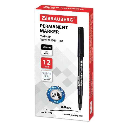 Перманентный маркер BRAUBERG "Super Slim" с супертонким металлическим наконечником. Благодаря меньшему размеру, он экономно расходует чернила и наносит надписи там, где не справляются обычные маркеры.