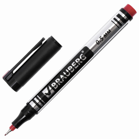 Маркер перманентный 0.5мм красный Brauberg Jet наконечник металл (1/12)