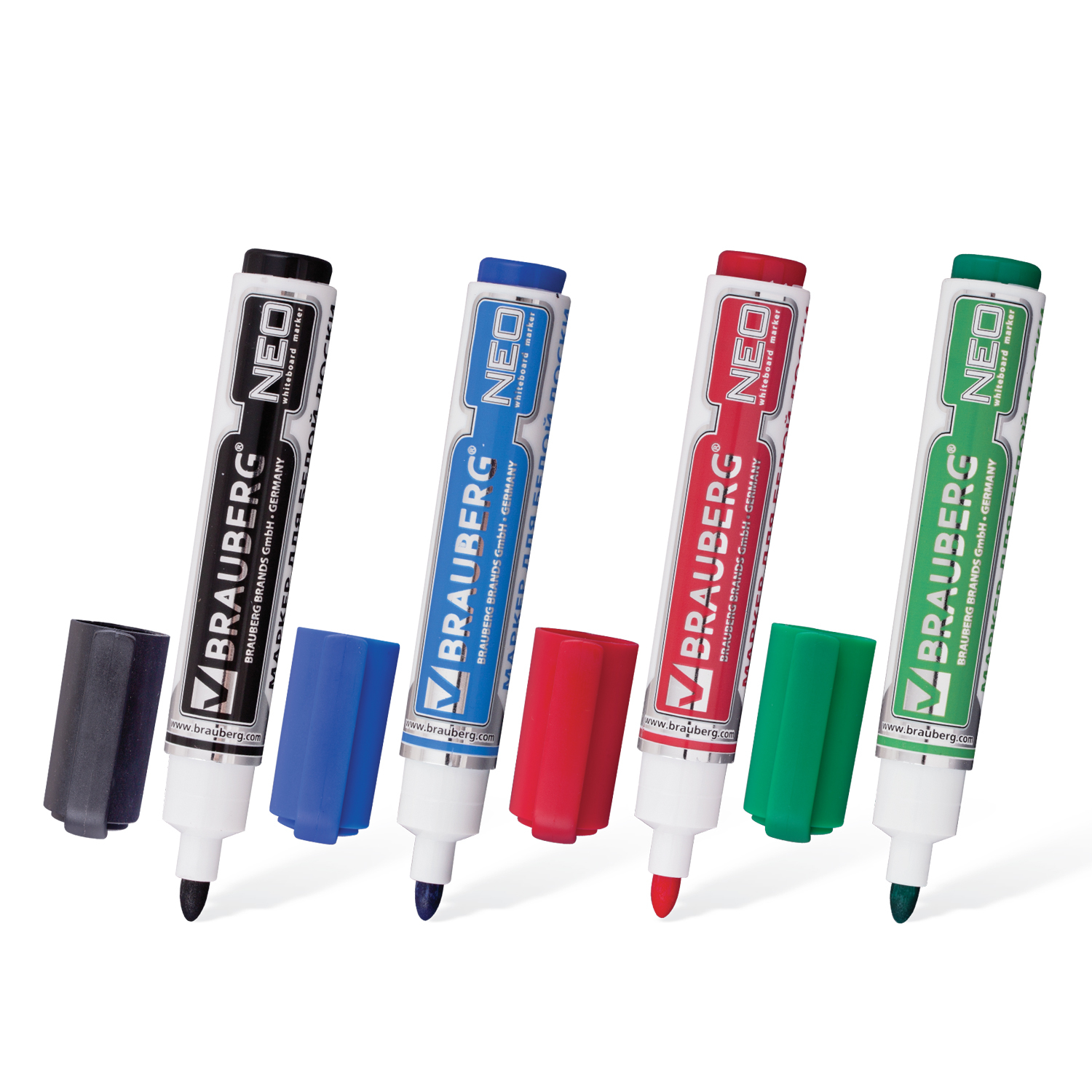 Маркеры для доски 5мм набор 4шт черн.,син., крас., зел., Brauberg Neo круглый с клипом (1/24)