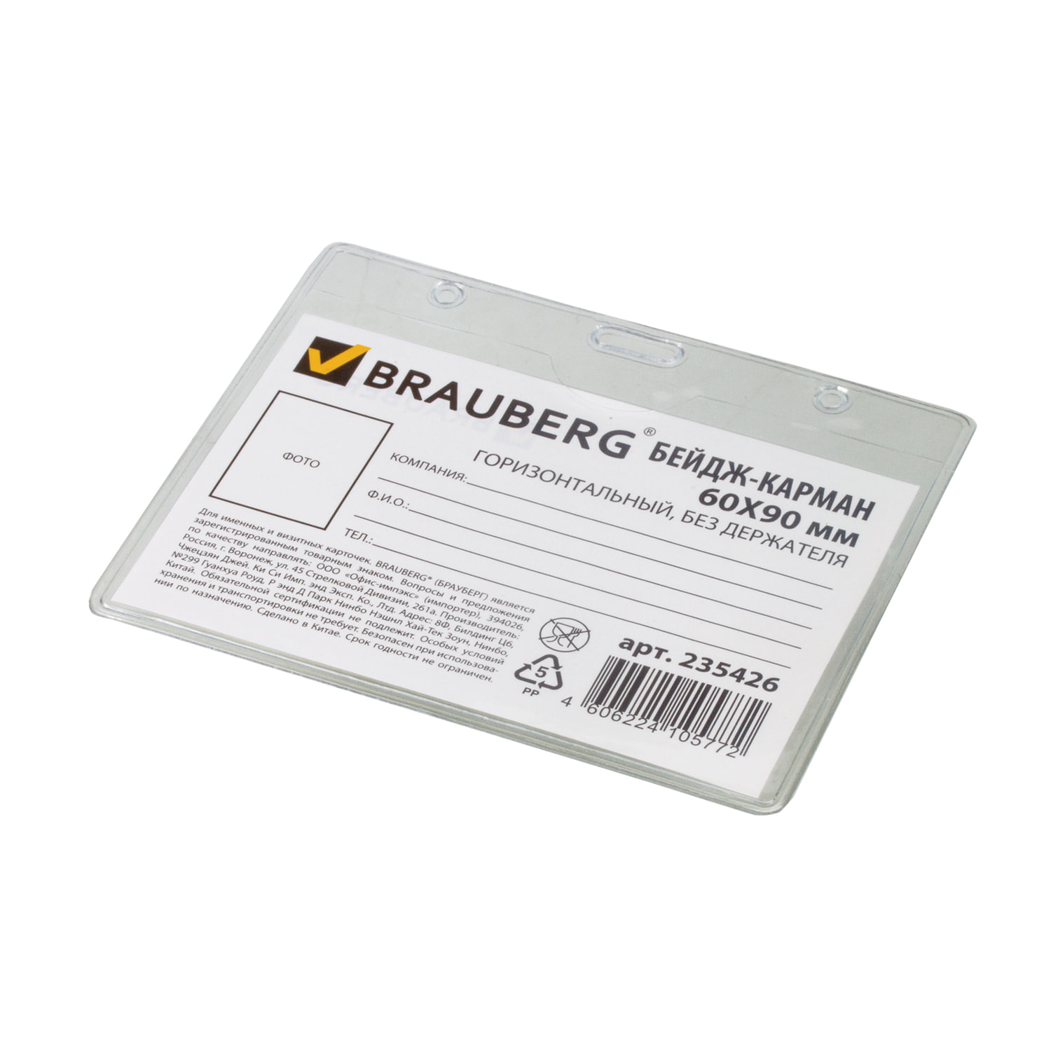 Бейдж-карман Brauberg горизонтальный 60*90мм без держателя (12/48)