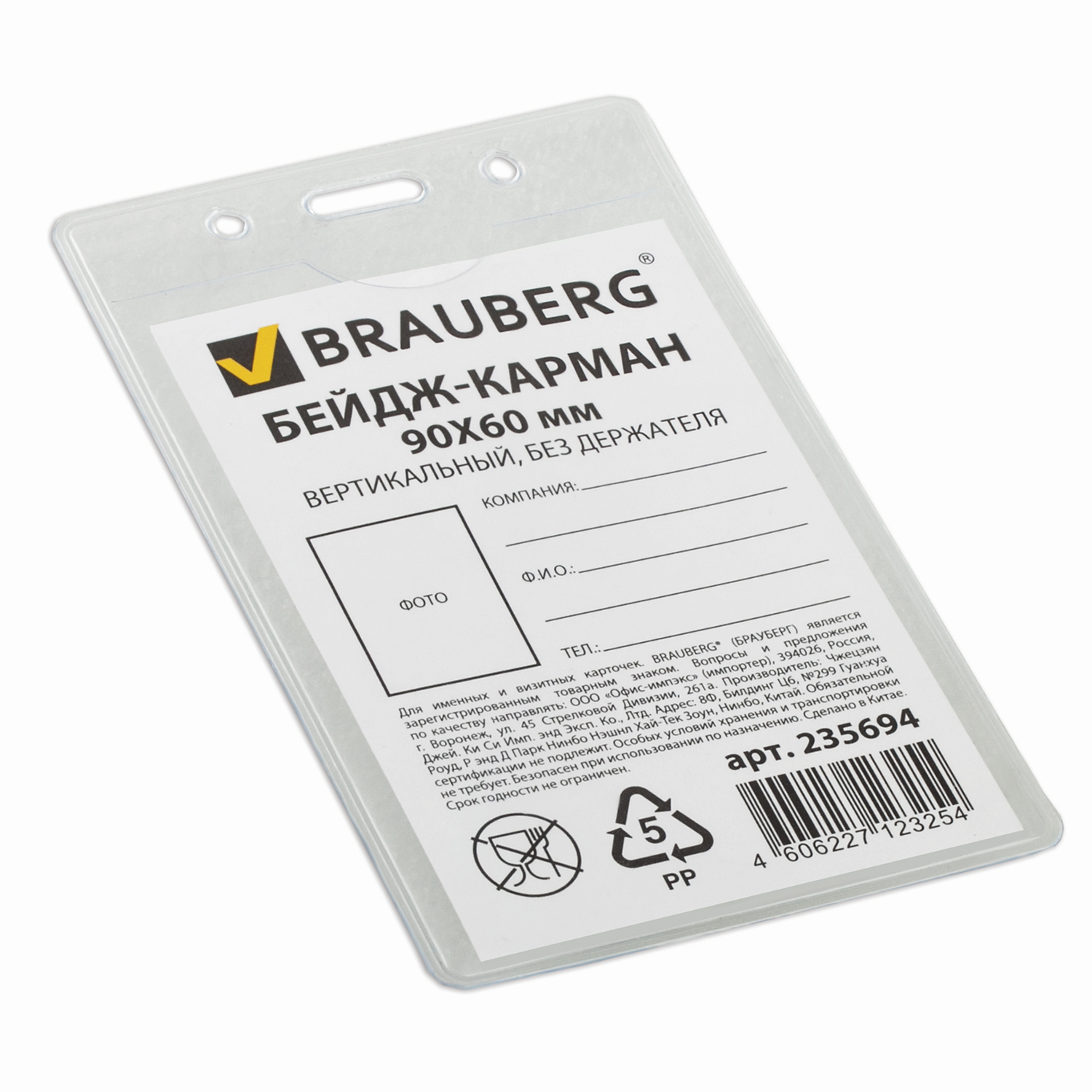 Бейдж-карман Brauberg вертикальный 90*60мм (12/48)
