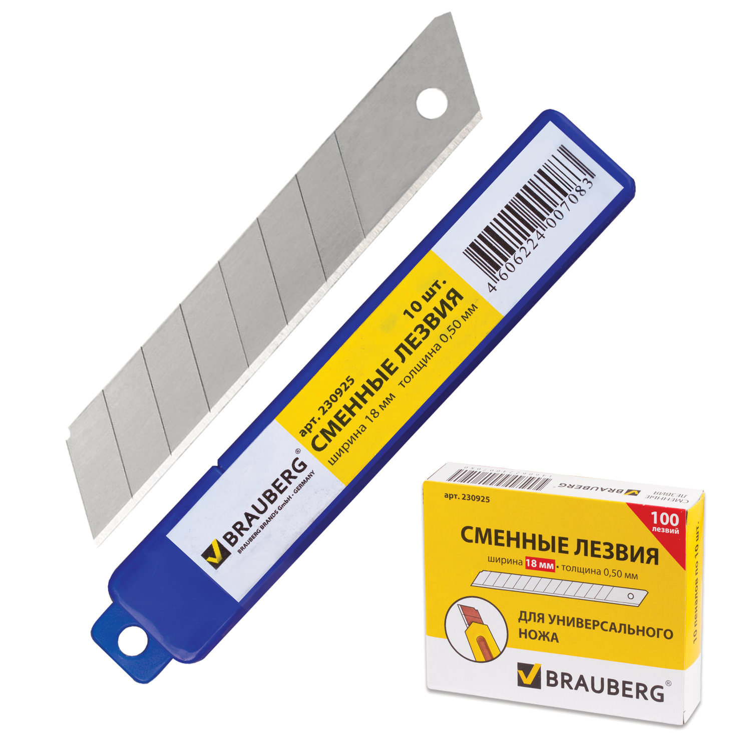 Лезвия для ножей 18мм Brauberg толщина лезвия 0,5мм комплект 10шт в пластиковом пенале (10/400)