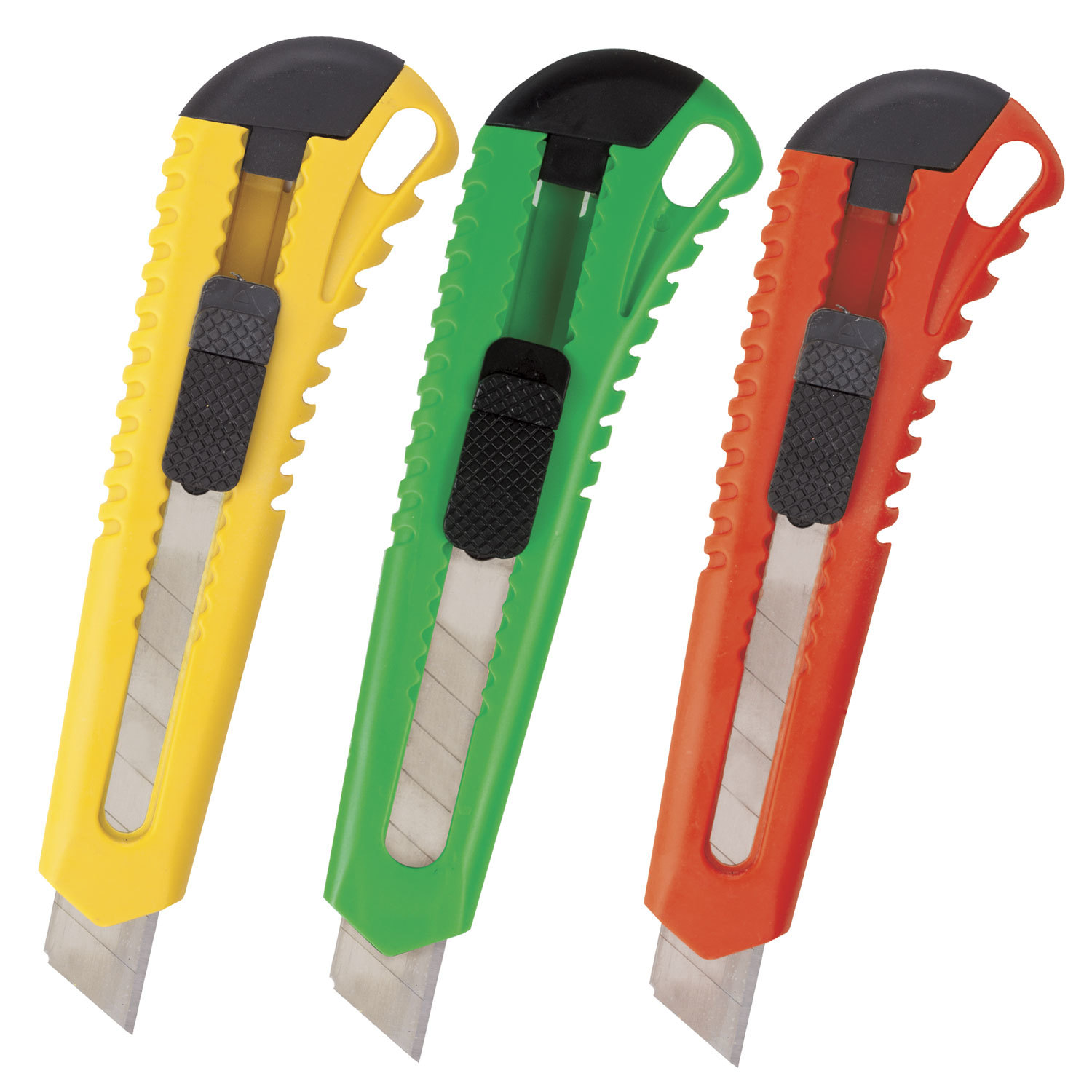 Нож канцелярский лезвие 18мм Brauberg фиксатор Ассорти с европодвесом (20/60)