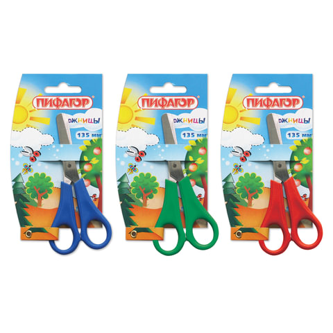 Ножницы 13,5см Пифагор с линейкой цвет ассорти (1/12/288)