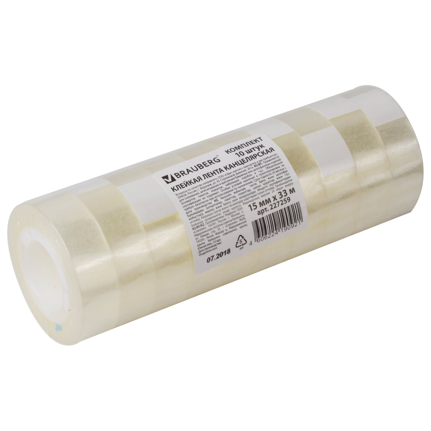 Скотч канцелярский 15мм х 33м 10шт 35мкм BRAUBERG гарантированная длина (1)