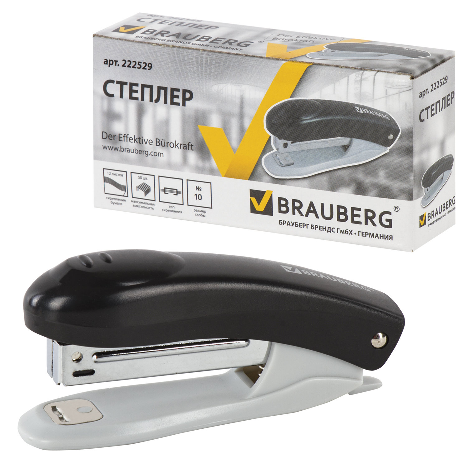 Степлер №10 до 12 листов Brauberg "Original" антистеплер черный (1/12)