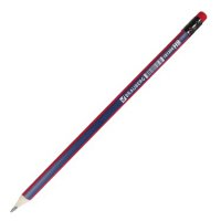 Карандаш чернографитный BRAUBERG "Stripes" НВ дерево трехгранный синий/красный цветной ластик (12)