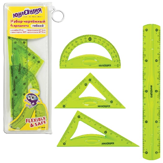 Набор чертежный средний гибкий Юнландия "FLEX" (линейка 20 см, 2 треугольника, транспортир) пенал (1/24)