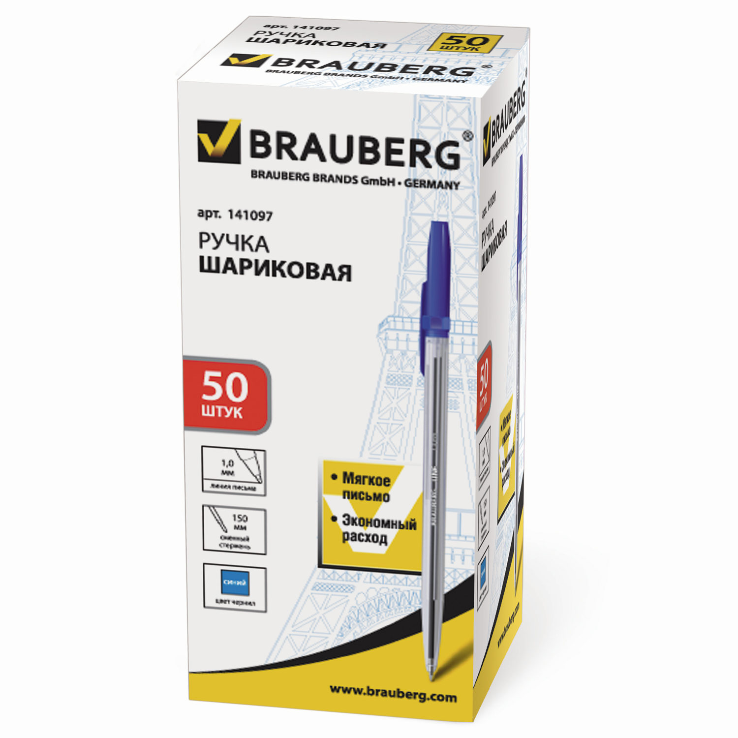 Ручка шариковая Brauberg "Line" пишущий узел 1мм корпус прозрачный синий стержень (100/50/1000)