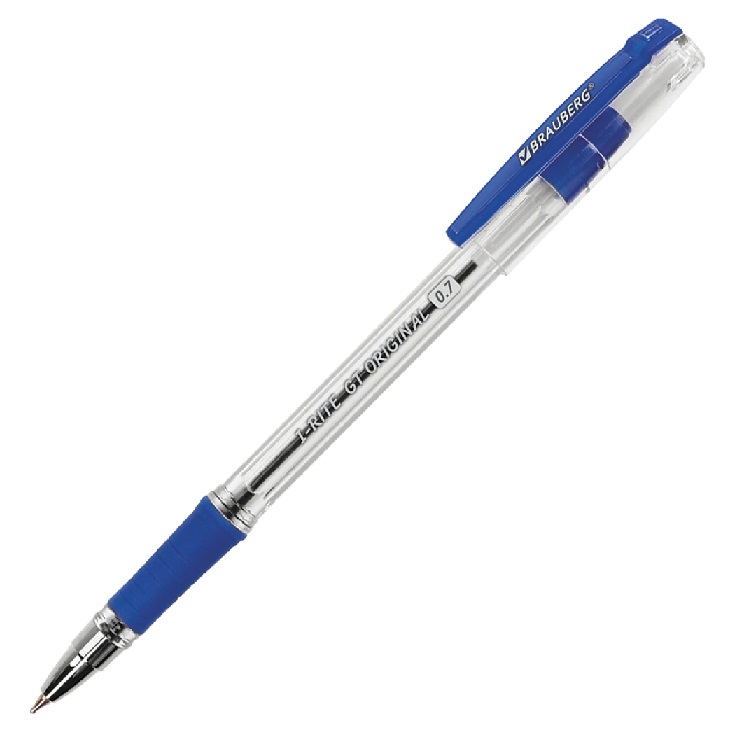 Ручка шариковая масляная Brauberg "i-Rite GT" 0,7 мм корпус прозрачный с грипом синий стержень (12)