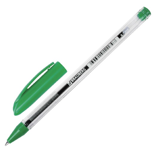 Ручка шариковая масляная Brauberg "Rite-Oil" 0,7 мм линия 0,35мм корпус прозрачный зеленый стержень (12)