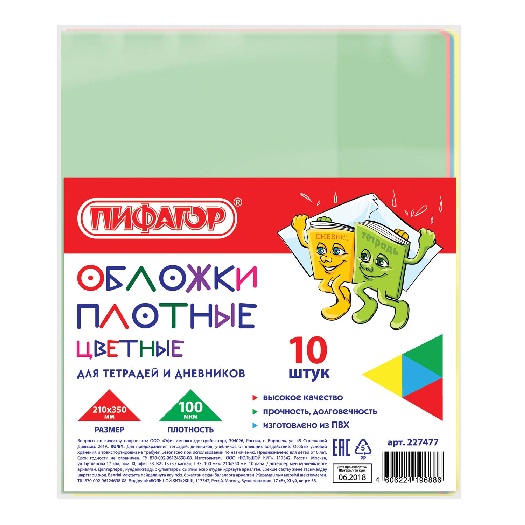 Обложка ПВХ ПИФАГОР 100мкм 210*350мм д/тетради и дневника ЦВЕТНЫЕ ПЛОТНЫЕ КОМПЛЕКТ 10шт (1)
