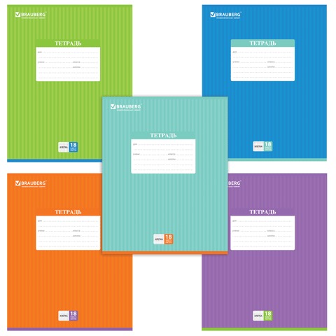 Тетрадь 18л. А5 клетка Brauberg ПОЛОСКИ ОДНОТОННЫЕ обложка мелованный картон (10/20)