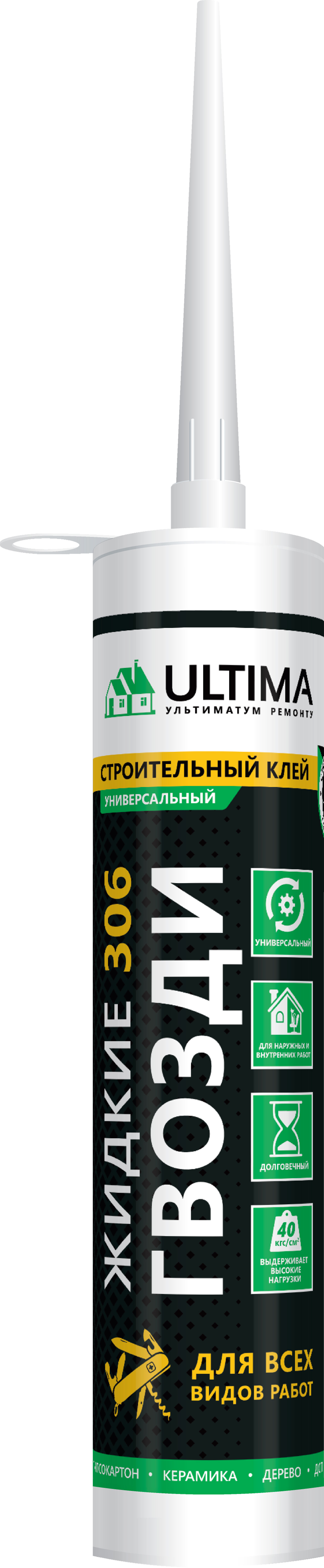Клей Жидкие Гвозди Ultima 306 каучуковый для всех видов работ 280мл бежевый (12)