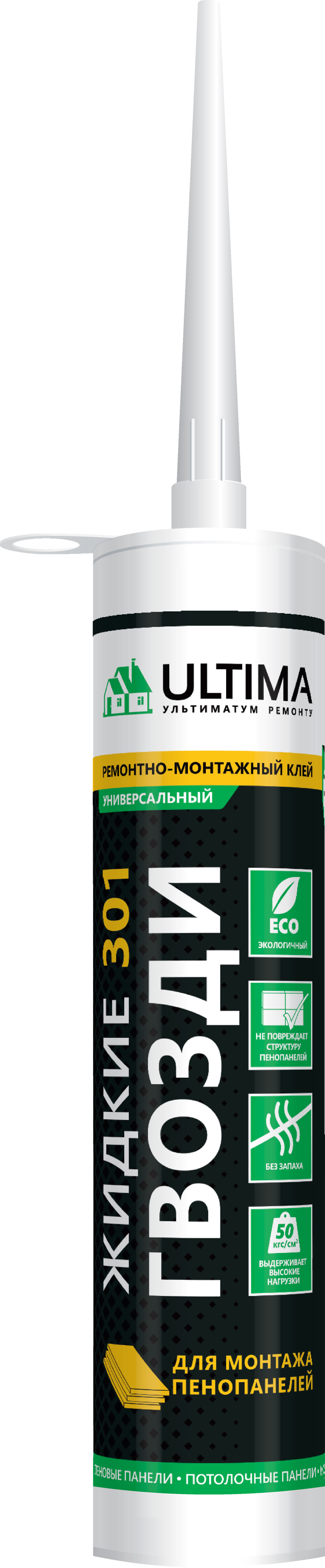 Клей ЖидкиеГвозди Ultima 301 акрил для монтажа пенопанелей 350г картридж белый (12)