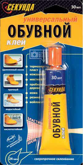 Клей Секунда Обувной 30мл водостойкий (1хBl) (12/36)