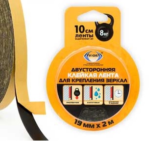 Двусторонняя лента Aviora вспенная основа 19мм х 2м 1хBl для зеркал черный (48)