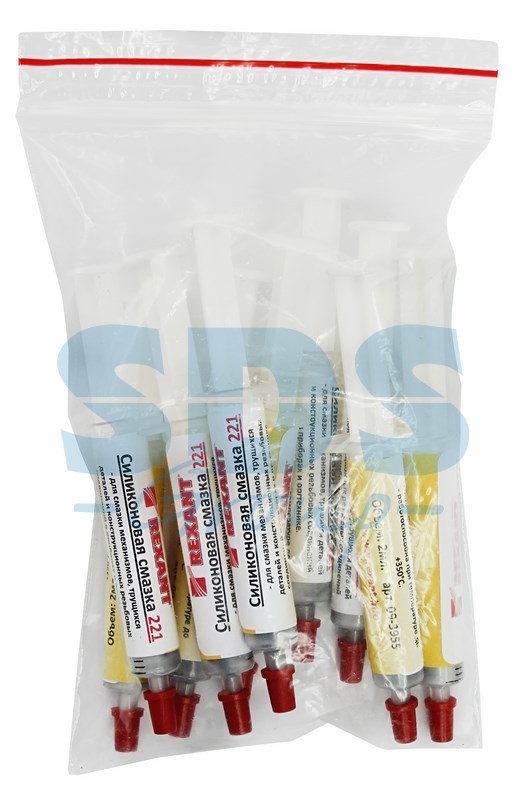 Смазка силиконовая 221 (до +350 °C) 2 мл (шприц) REXANT предназначена для смазывания механизмов и трущихся деталей, конструкционных резьбовых соединений.