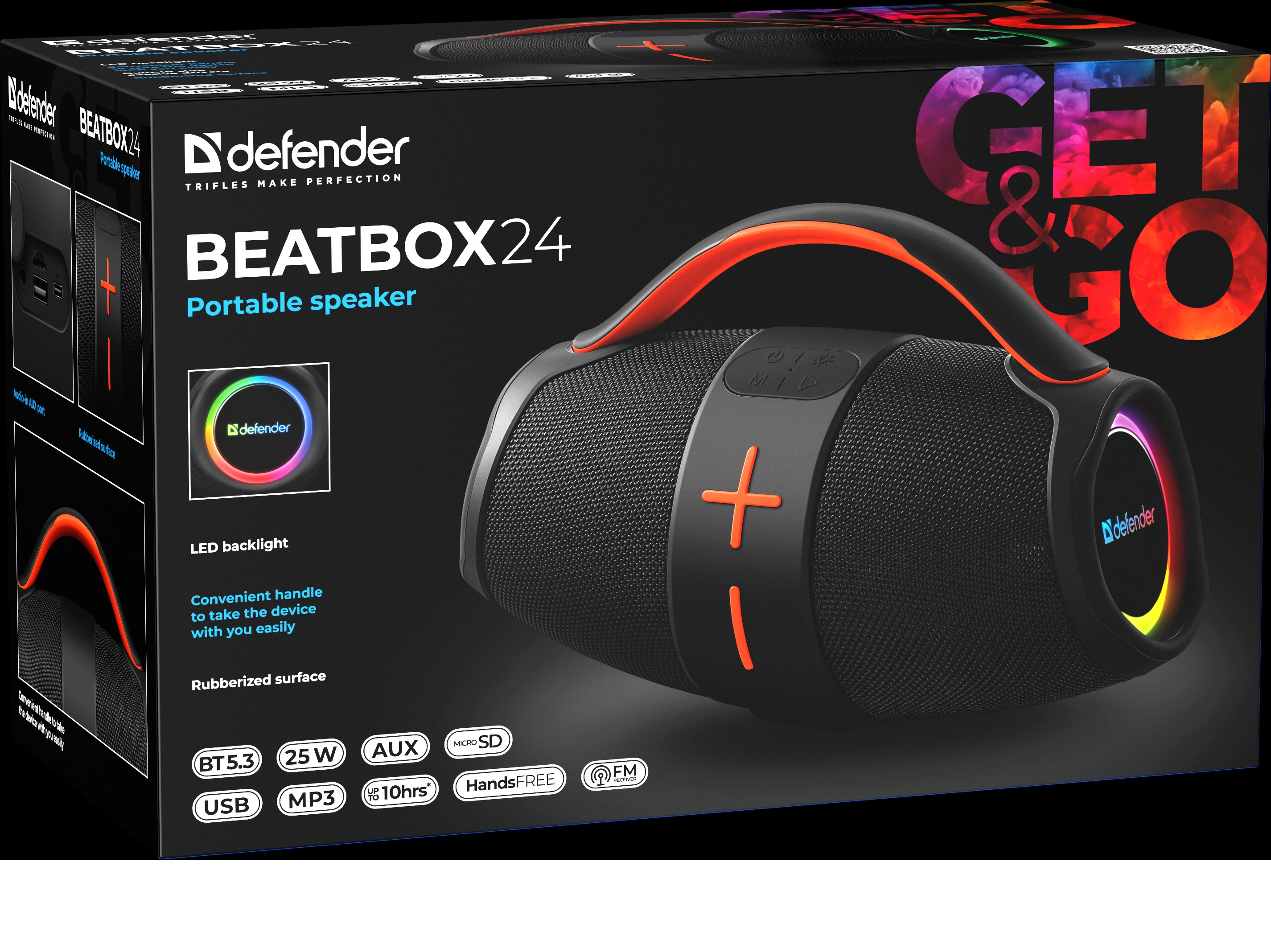 Колонка портативная Bluetooth Defender Beatbox 24 25Вт аккумулятор 3600мАч FM/MP3(microSD/USB)/AUX/TWS/Hands free чёрный (1/8)
