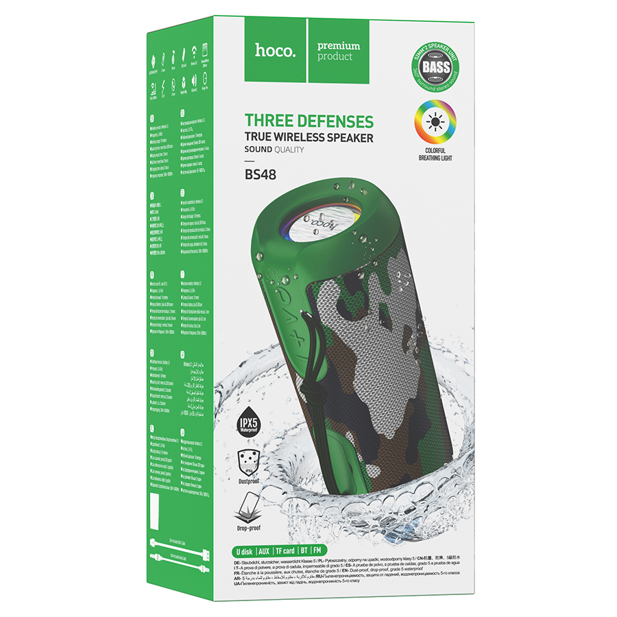 Колонка портативная Bluetooth Hoco BS48 10Вт акк 1200мАч FM/MP3(microSD/USB)/AUX/TWS/LED/IPX5 камуфляж (1/5/40)