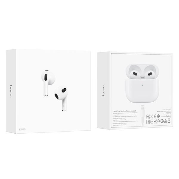 Гарнитура вкладыши TWS Hoco EW10 Bluetooth 5.1, зарядная станция 300mAh, наушники 30mAh, белый (1/20)