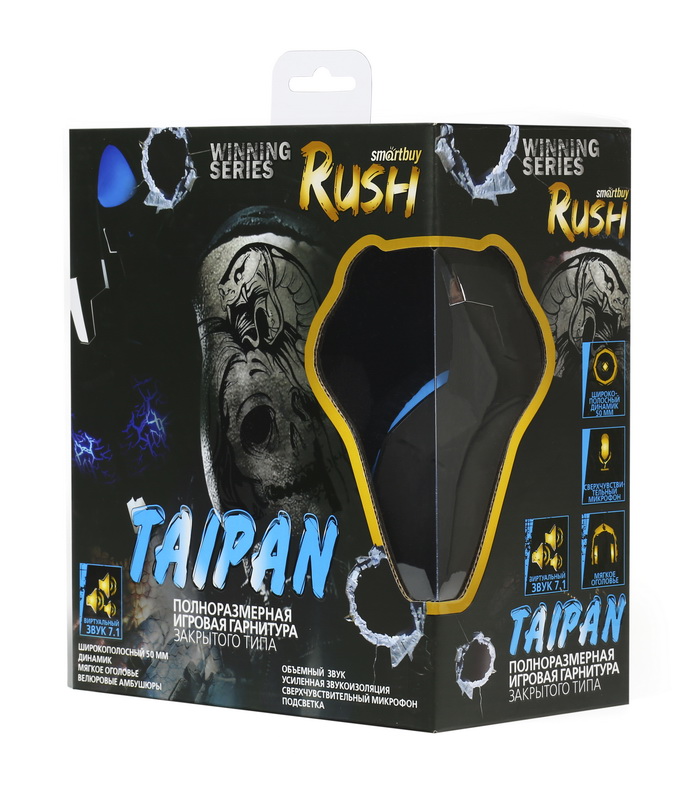 Гарнитура полноразмерная игровая SmartBuy Rush Taipan 2.5м USB7.1 чёрный/синий