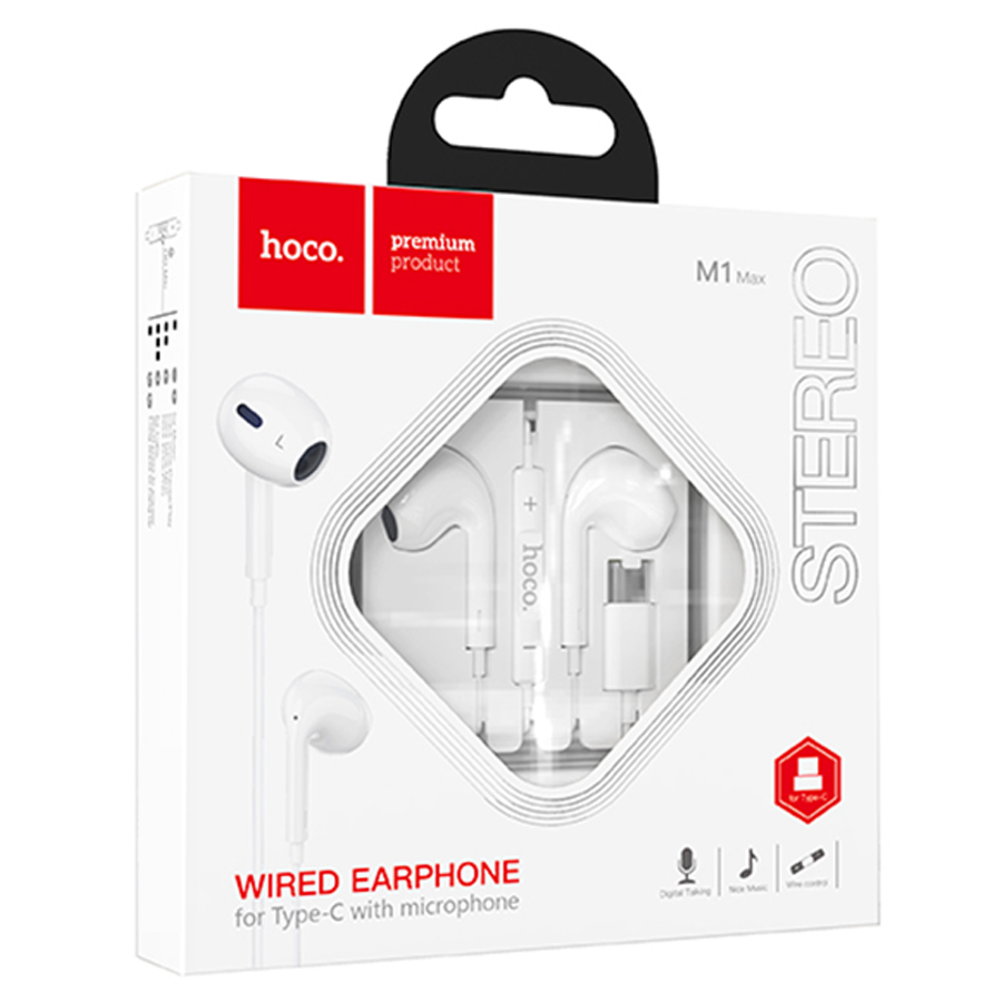 Гарнитура вкладыши Hoco M1 Max 1.2м TypeC белый коробка (1/32/192) (есть ограничения по совместимости!)