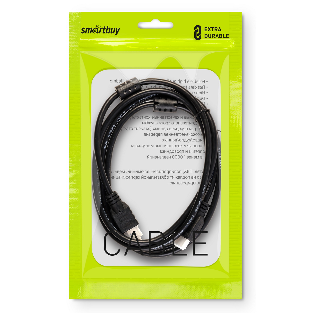 Кабель HDMI - HDMI 3м v1.4b, 2 фильтра, SmartBuy, пакет (1/10)