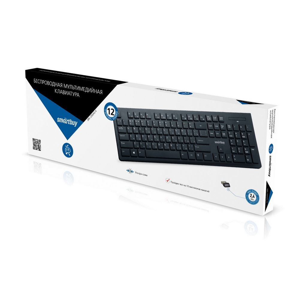 Клавиатура Smartbuy 206 мультимедийная, slim, чёрный, беспроводная (1/20)