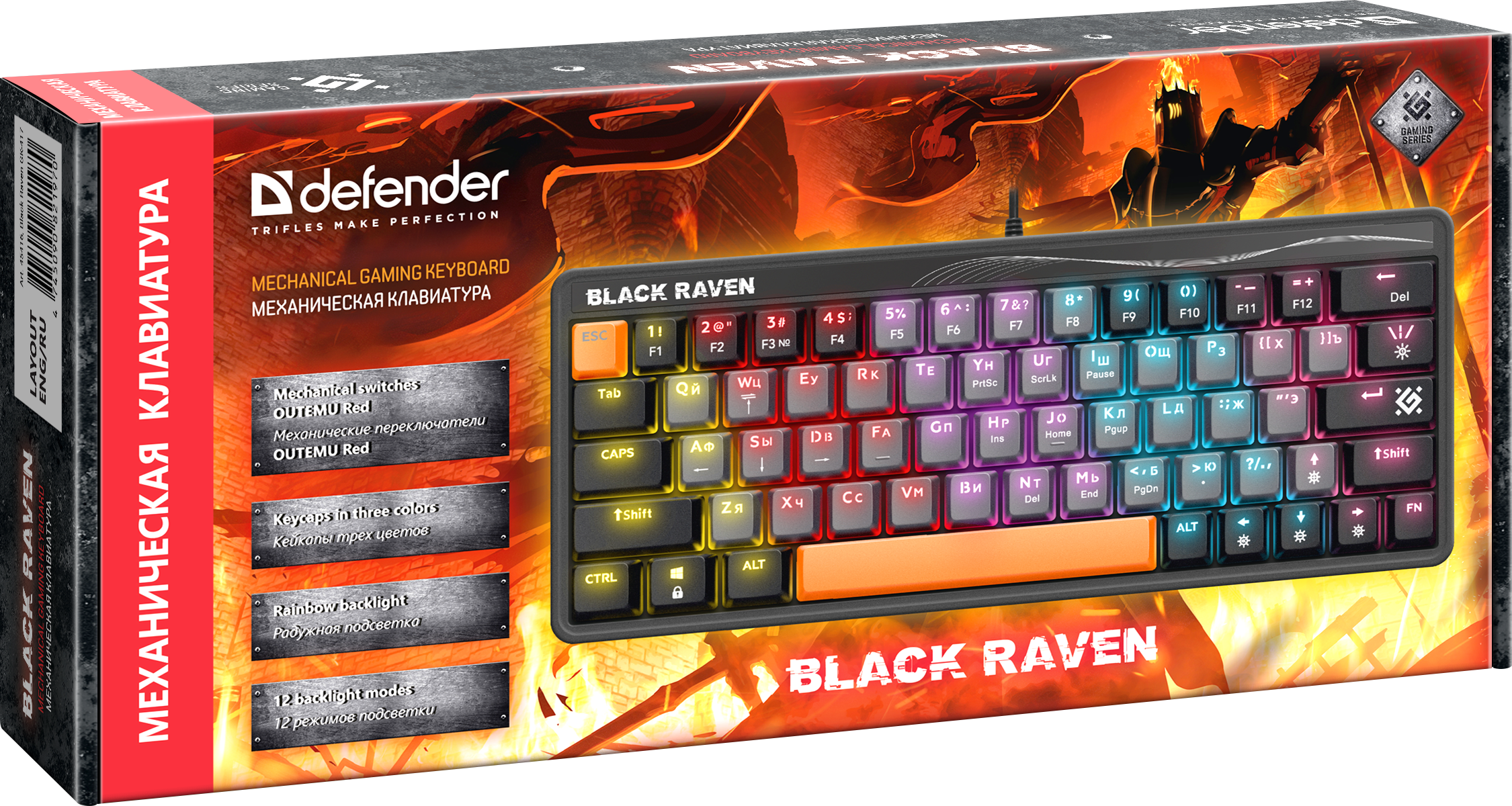 Клавиатура Defender Black Raven GK-417 RU радужная подсветка, красные свитчи, механическая, серый (1/20)