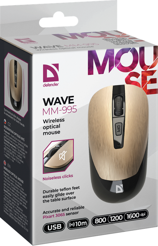 Мышь Defender бесшумная Wave MM-995 4кн, 800/1200/1600 dpi, бронза, беспроводная (1/40)