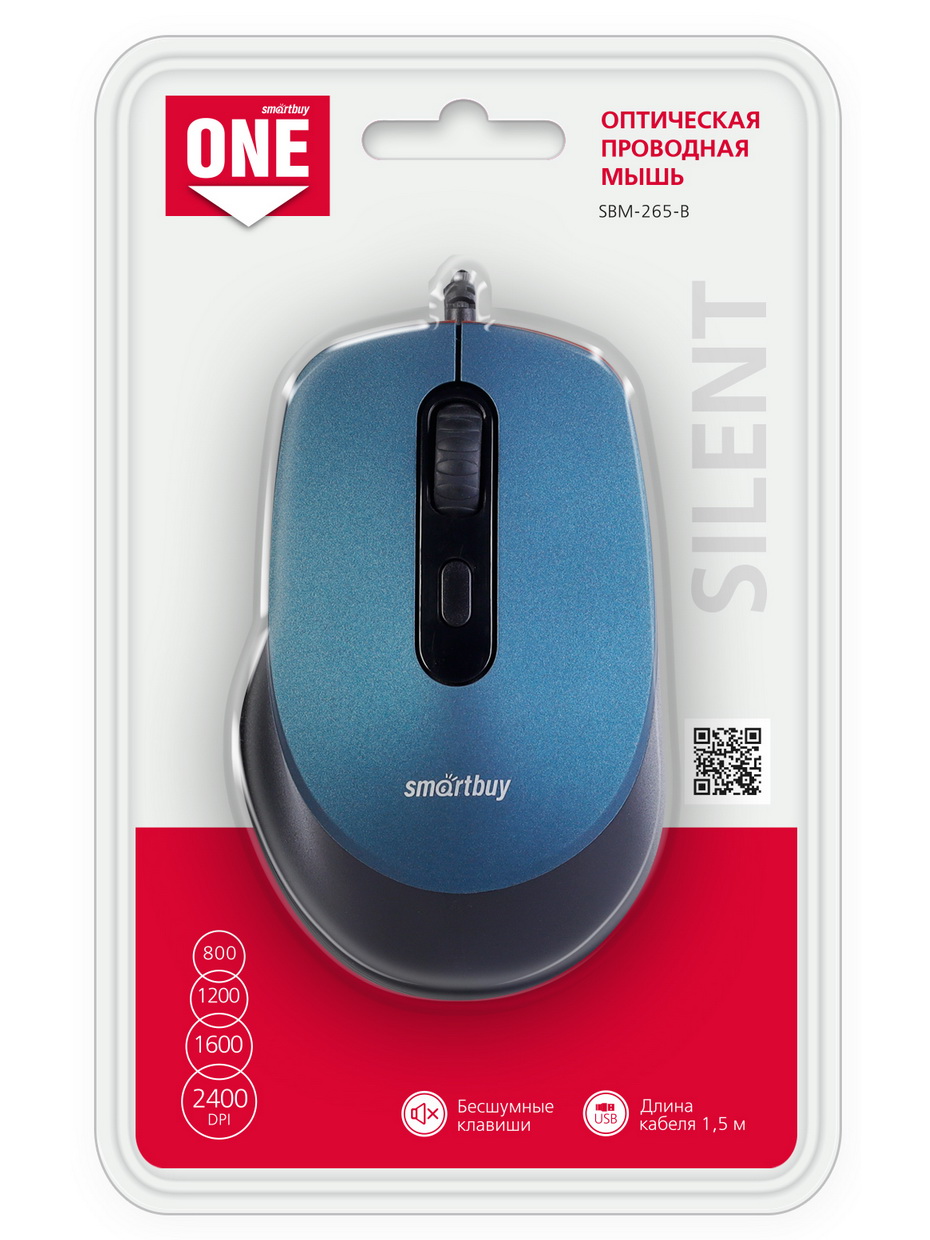 Мышь бесшумная Smartbuy 265 One 4кн 800/1200/1600/2400dpi синий (1/40)