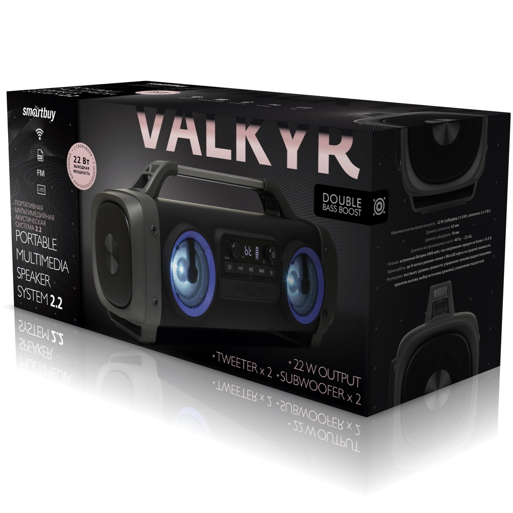 Колонка портативная Bluetooth SmartBuy 115 Valkyr 22Вт аккумулятор 3600мАч MP3/FM/microSD/USB/AUX черный (4)