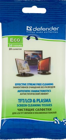 Салфетки Defender CLN Эко влажные для LCD/TFT экранов в мягкой упаковке 20шт/уп (1/38)