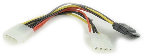 Кабель питания SATA 15 см, 4pin(molex)/4pin(molex)+15pin(SATA) на 2 устройства, Gembird (1/250)