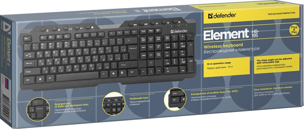 Клавиатура Defender мультимедиа HB-195 RU Element чёрный беспроводная (1/20)